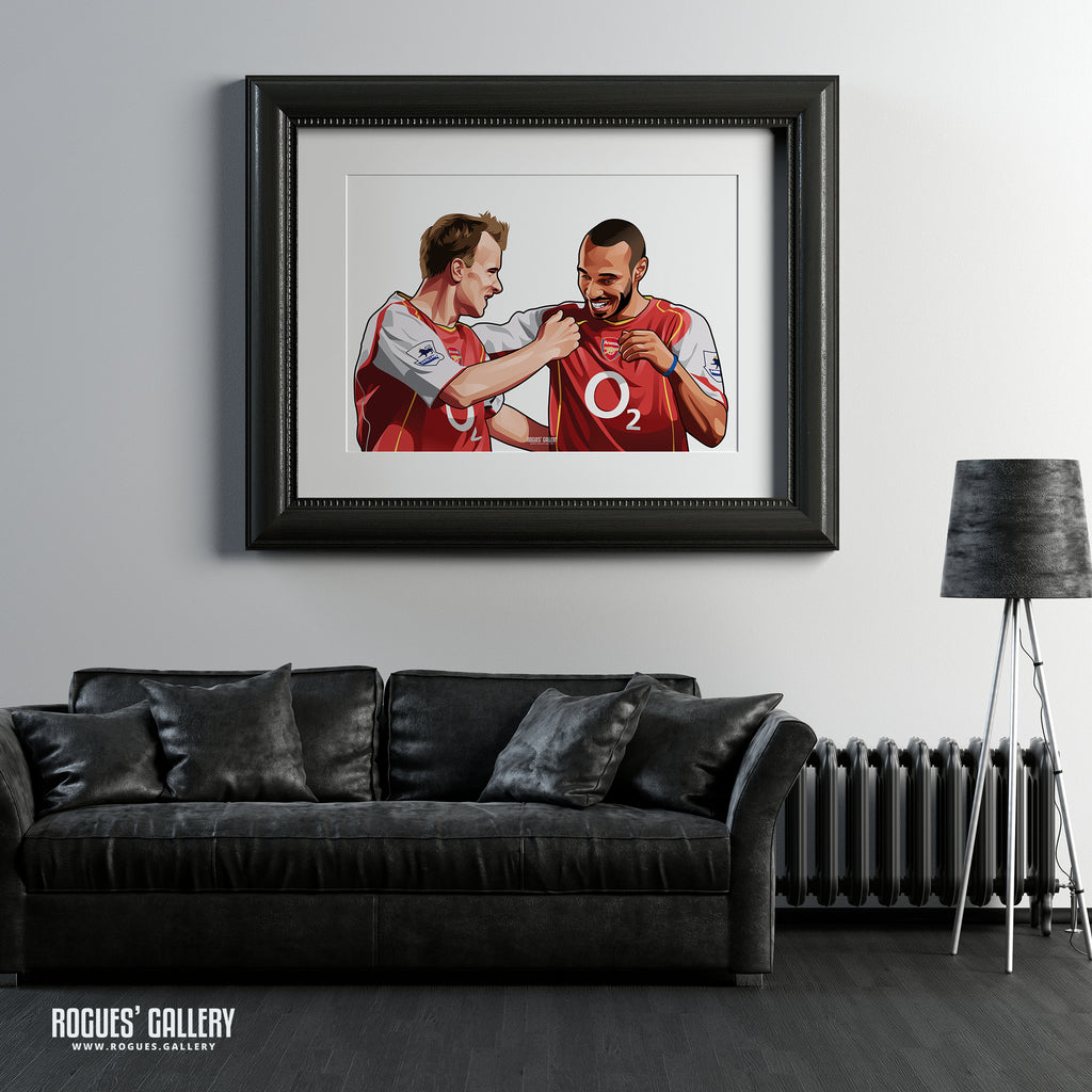 A portrait of Gunners Legends Dennis Bergkamp and Thierry Henry celebrating another goal for The Gunners. Truly two of the best to ever wear the shirt, together on the pitch.
