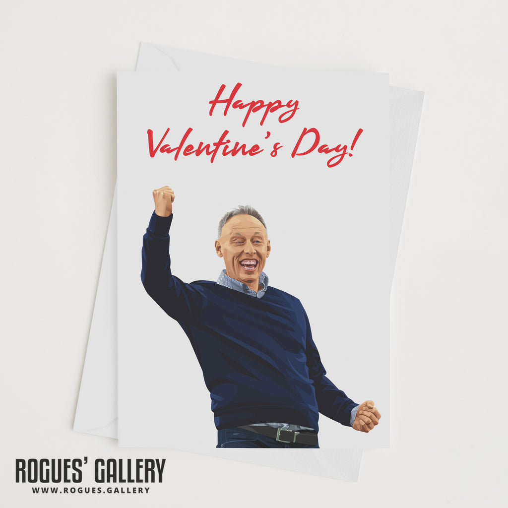 Valentine's Day card featuring Nottingham Forest coach performing his trademark fist pump - with 'you make me feel as super as Stevie Cooper' slogan.