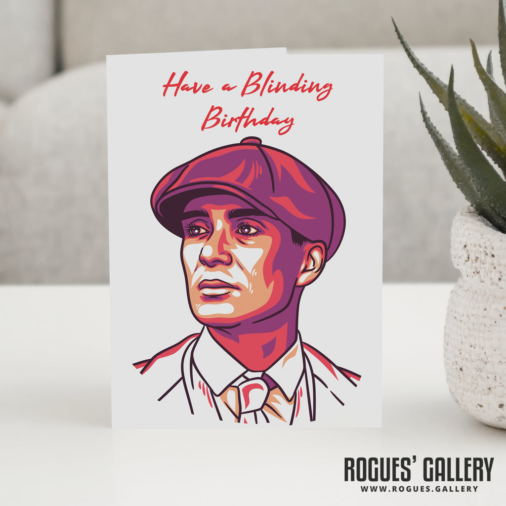 Brummie gangster boss Thomas Shelby of The Peaky Blinders Birthday Cards featuring a the 'Have a blinding...' slogan!