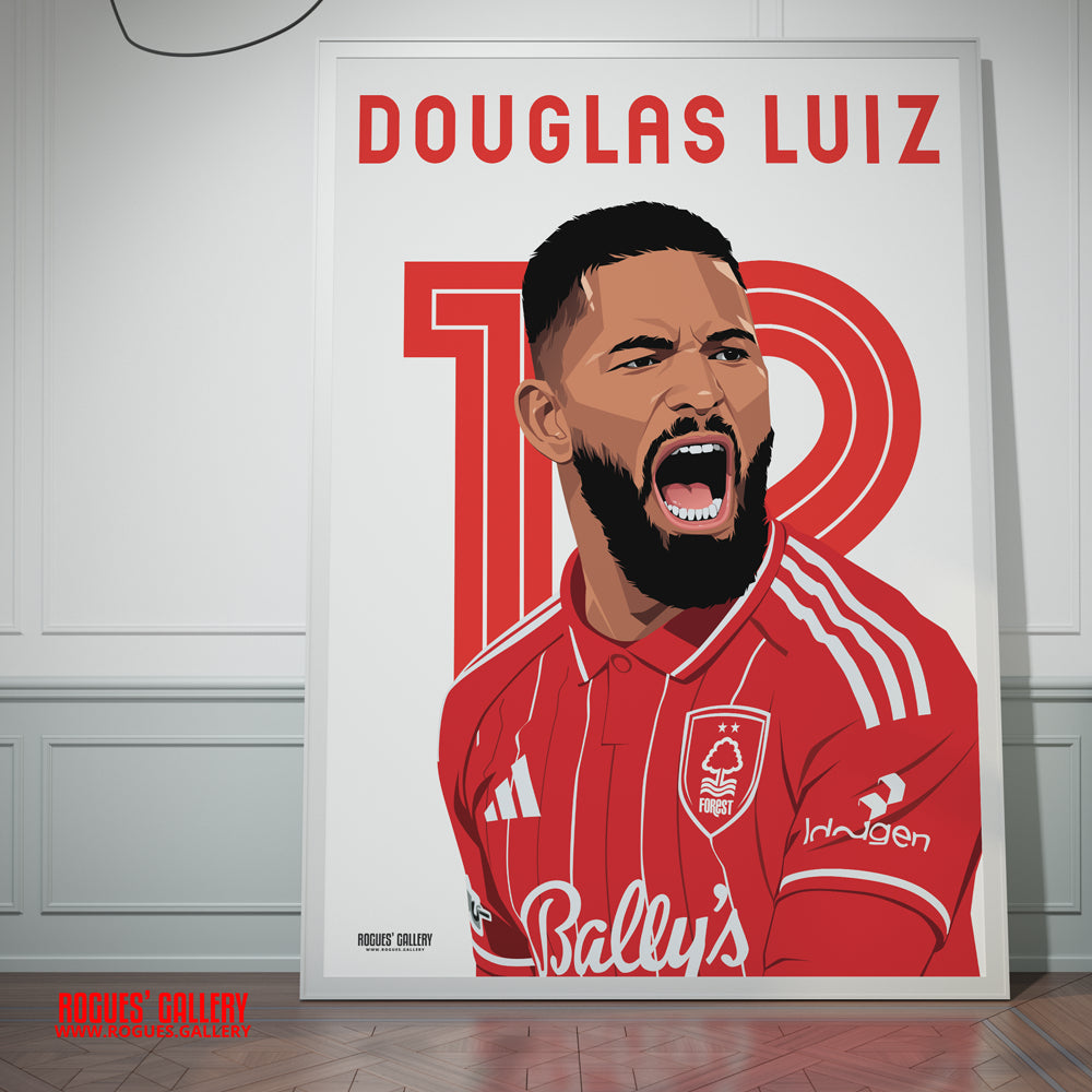 Douglas Luiz - Nottingham Forest - A0, A1, A2 or A3 Premier League 2025-26 Name & Number Prints