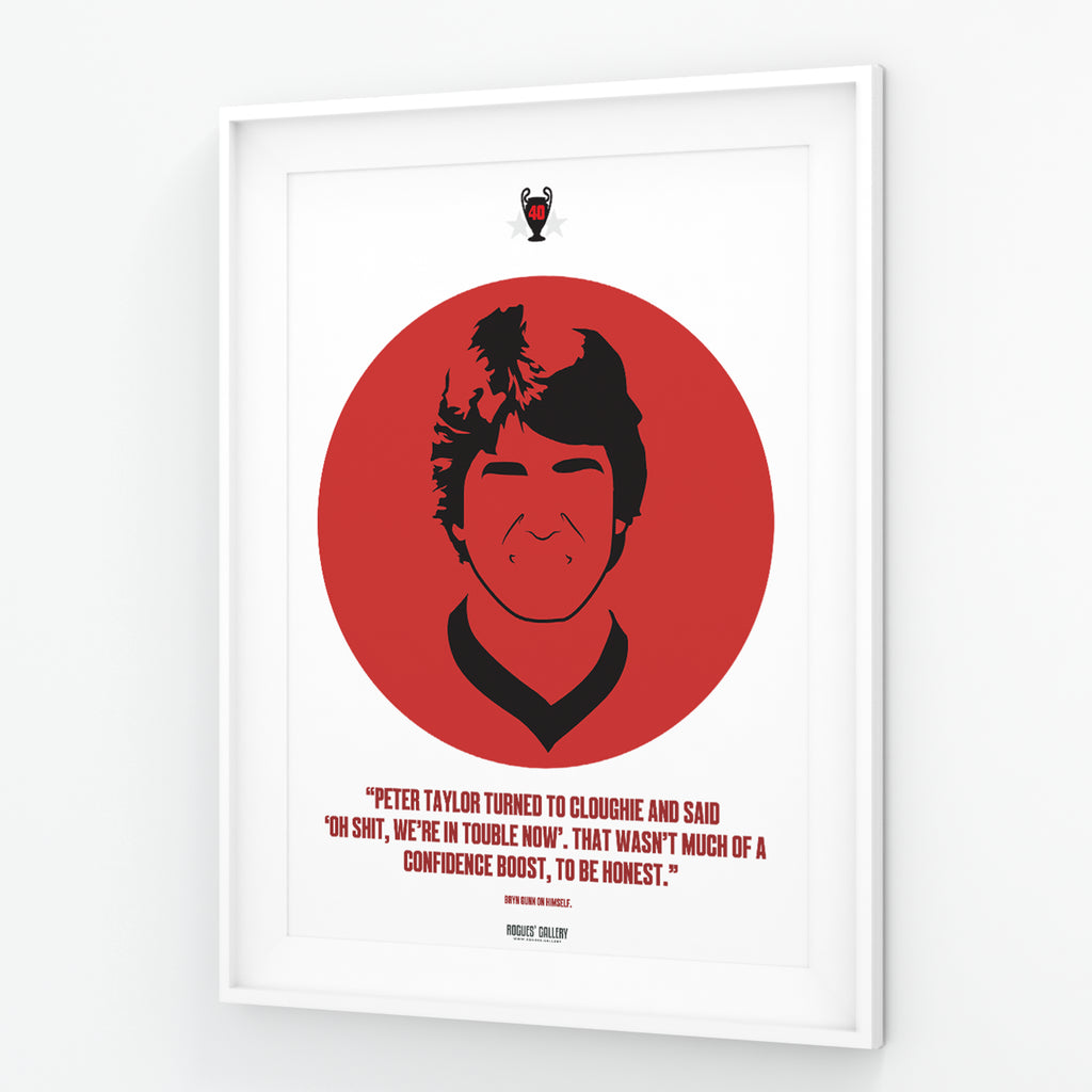 Superb quality print to commemorate the 40th Anniversary of the European Cup Winning Forest Teams of 1979 when Forest defeated Malmo and 1980 when Hamburg were defeated. Although Gunn only played a few minutes of the final his introduction provoked the legendary quote from Peter Taylor - although for once his judgement was luckily slightly off!
