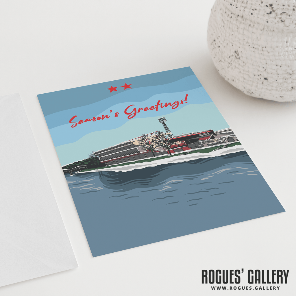 The City Ground complete with festive snow and two stars to guide the wise men through the festive fixture list too.