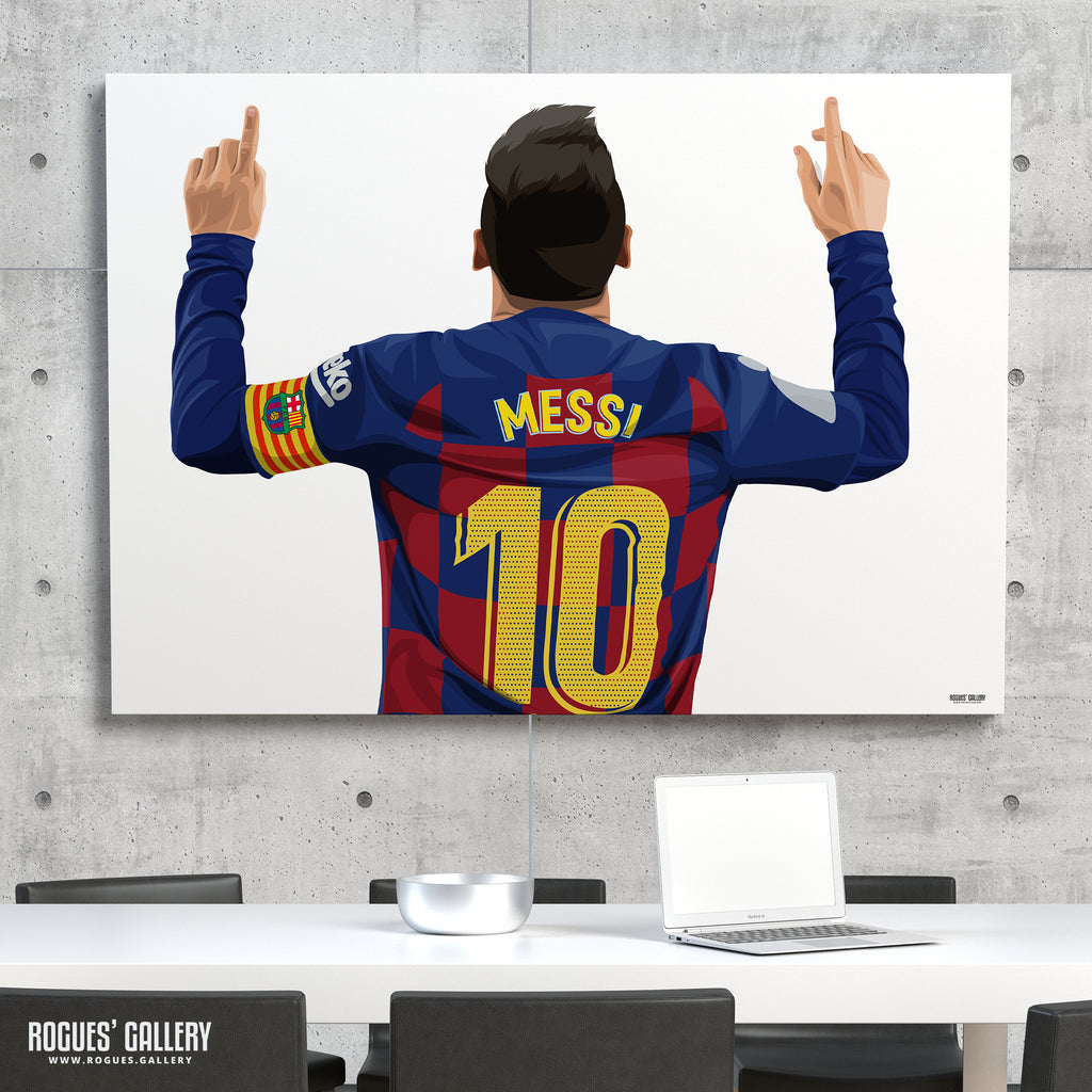 A portrait of Lionel Messi arguably the greatest footballer the World has seen - his name and number on the back of his FC Barcelona jersey.