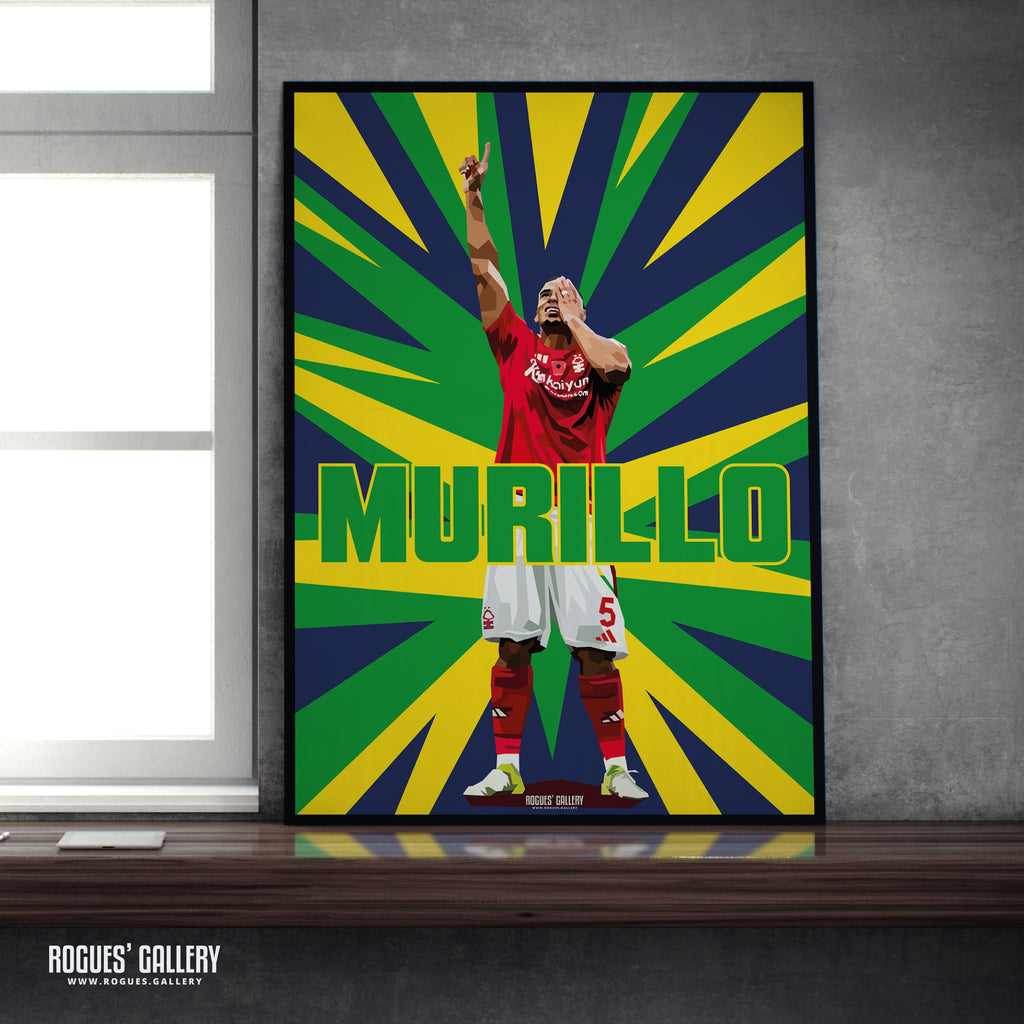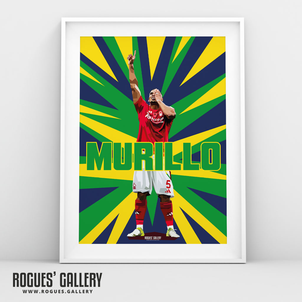 Murillo Celebrates - Nottingham Forest - A0, A1, A2 or A3 Prints - Brazil Colours