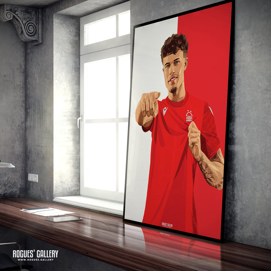 Neco Williams - Nottingham Forest - Signed A3 Red & White Prints