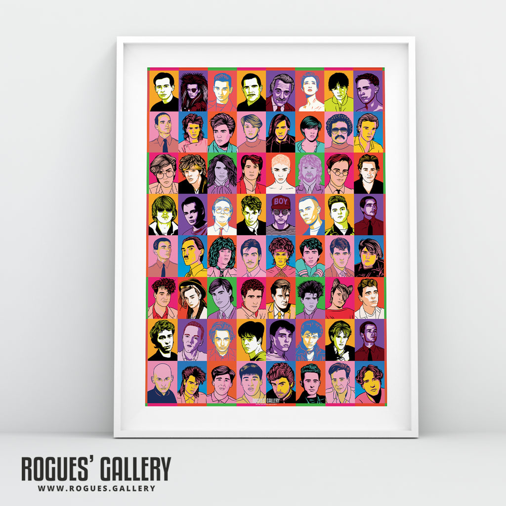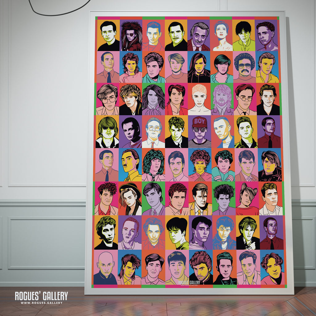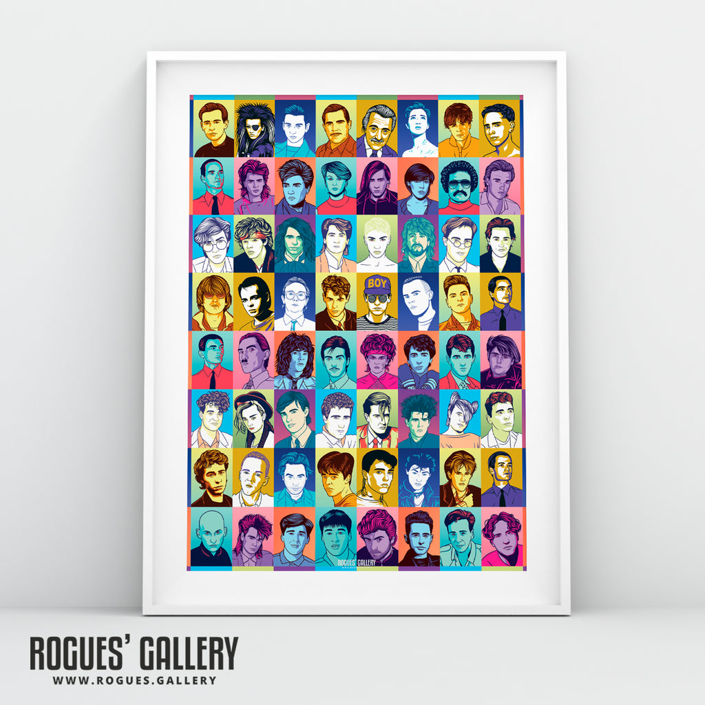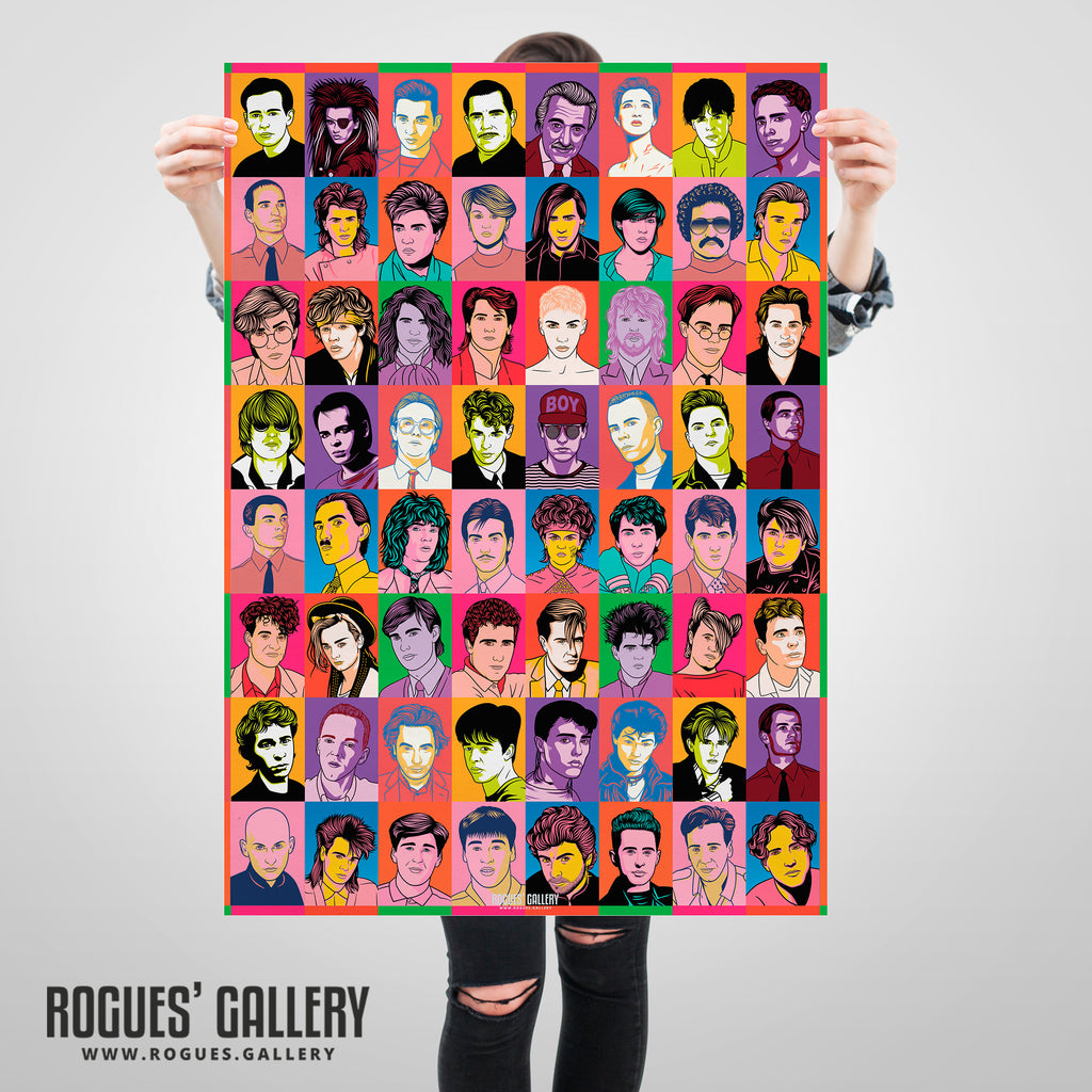 Iconic Andy Warhol style pop art designs featuring many of the most famous faces of the 80s in music.