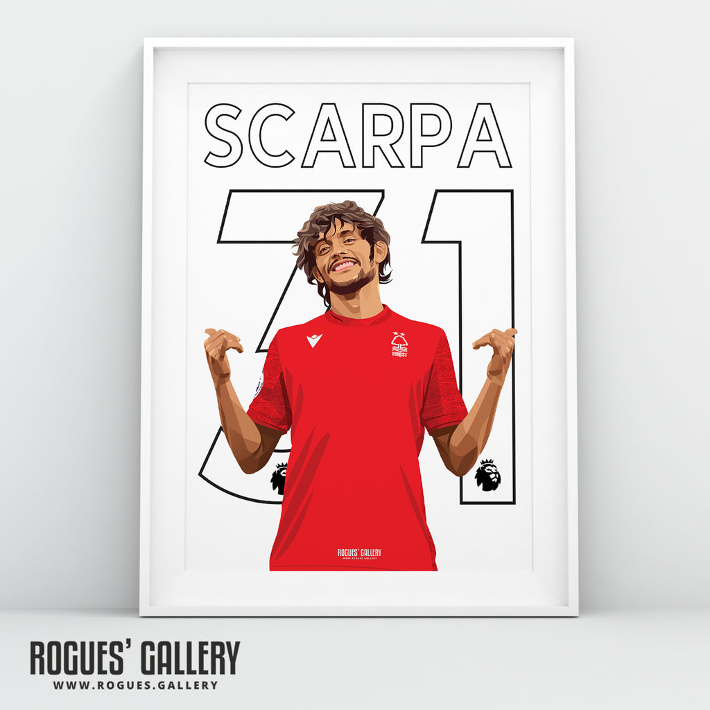 Gustavo Scarpa - Nottingham Forest - Signed A3 Premier League Name & Number Prints