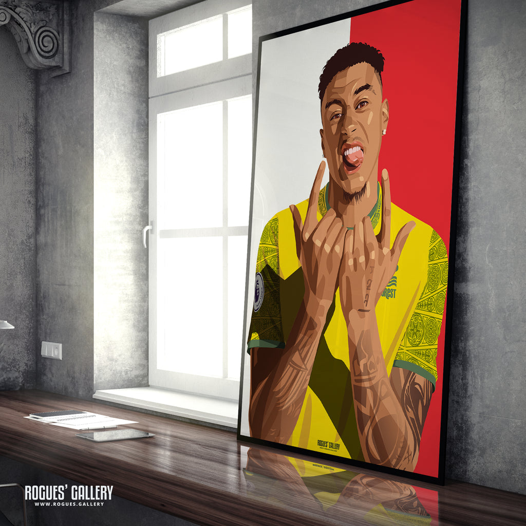 Jesse Lingard (Away) - Nottingham Forest - Signed A3 Red & White Prints