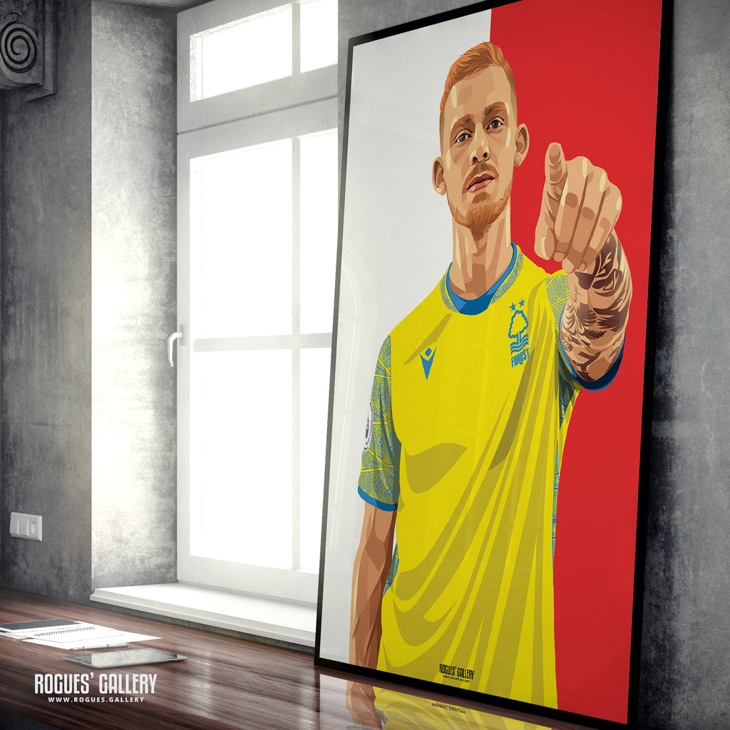 Lewis O'Brien - Nottingham Forest - Signed A3 Red & White Prints