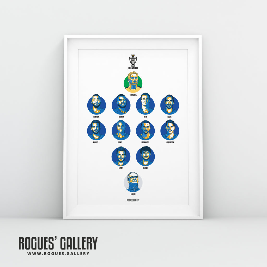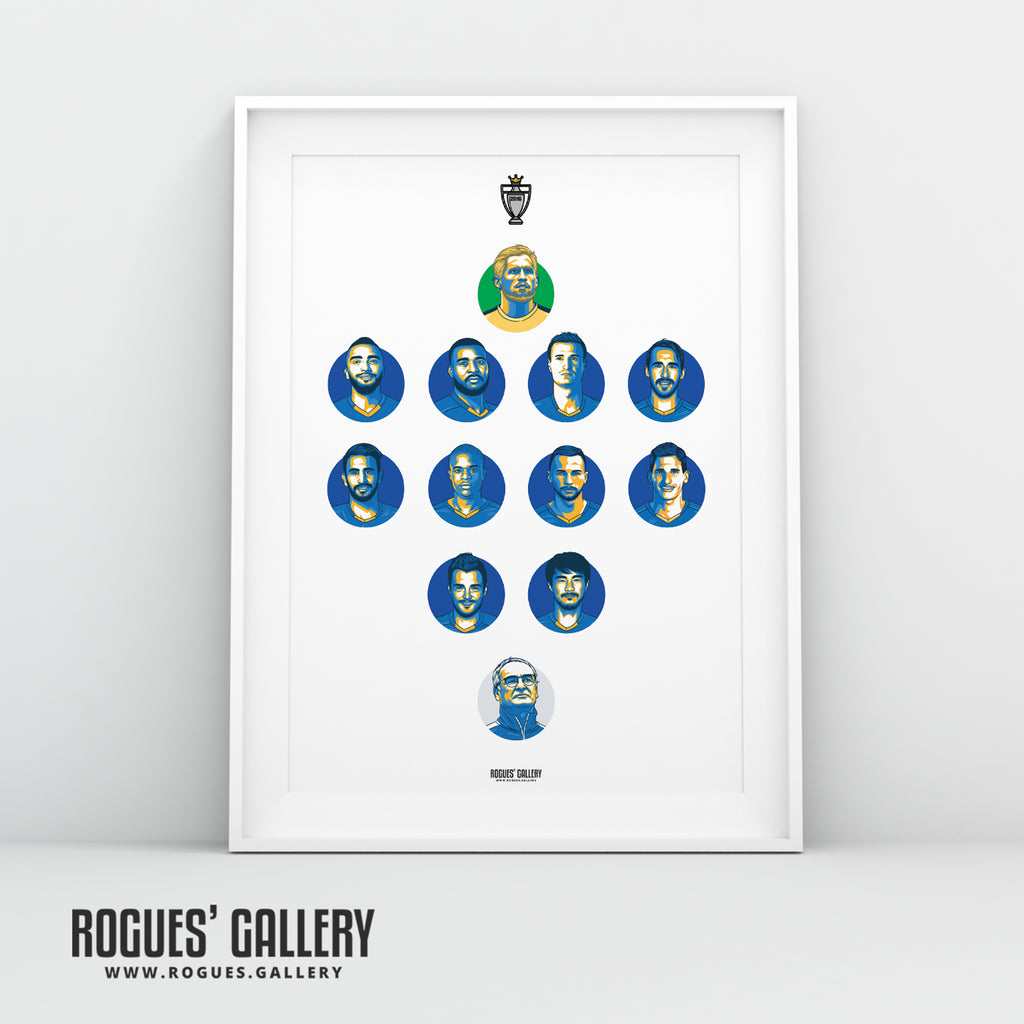 Premier League Champions Team 2016 - TWO Versions - Leicester City - A0, A1 or A3 Print