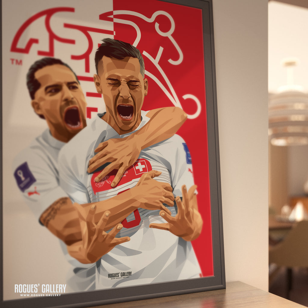 Another of Nottingham Forest's new signings at the Qatar World Cup is Swiss midfield conductor Remo Freuler. Celebrating scoring the winning goal at the World Cup.
