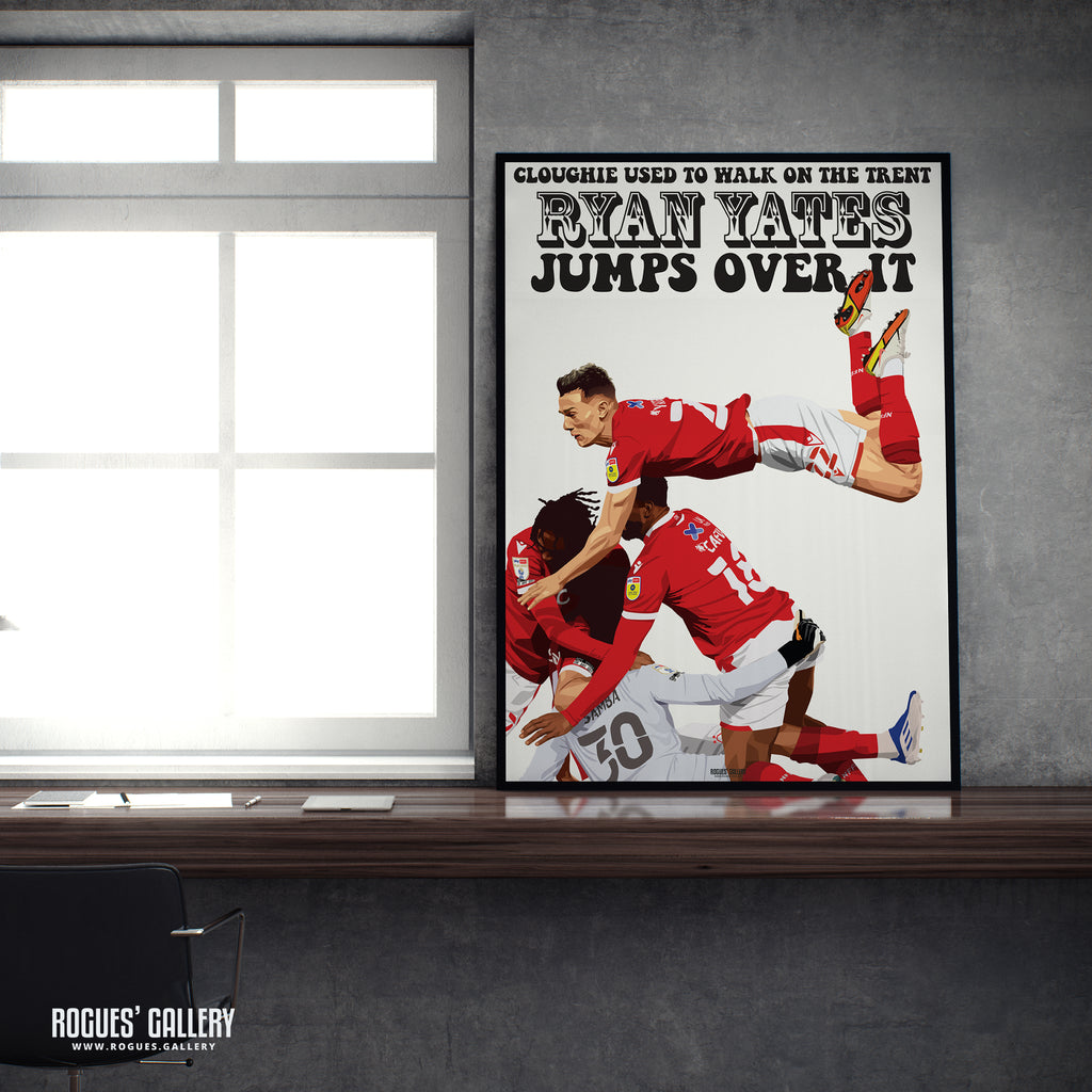 Ryan Yates Jumps Over The Trent - Nottingham Forest - Signed A3 Prints