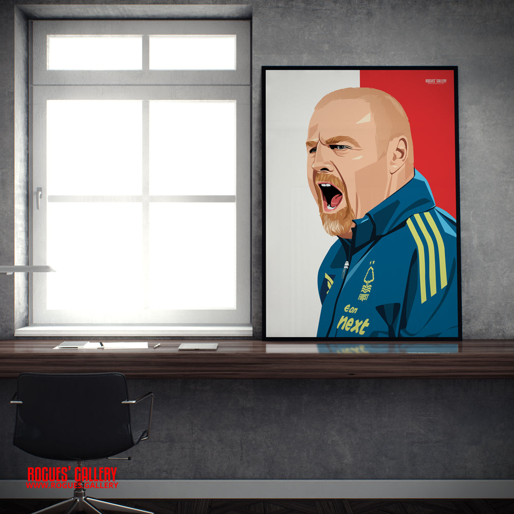 Sean Dyche - Nottingham Forest - A0, A1, A2 or A3 Red & White Prints