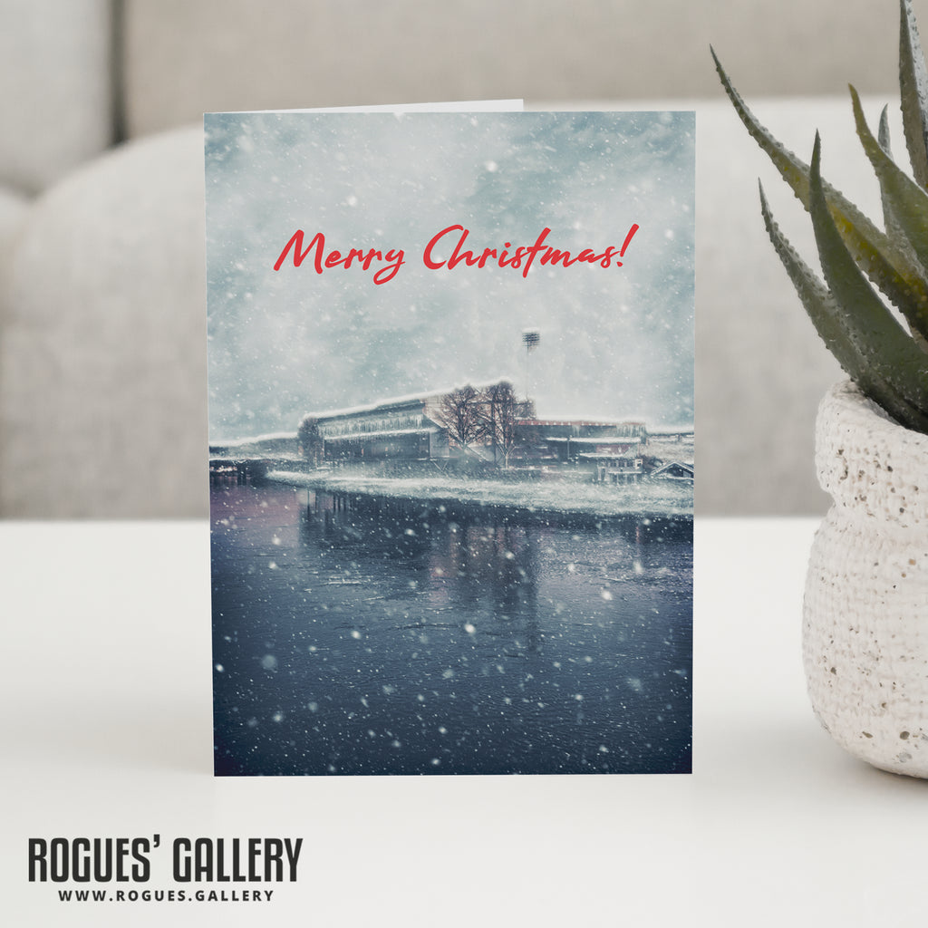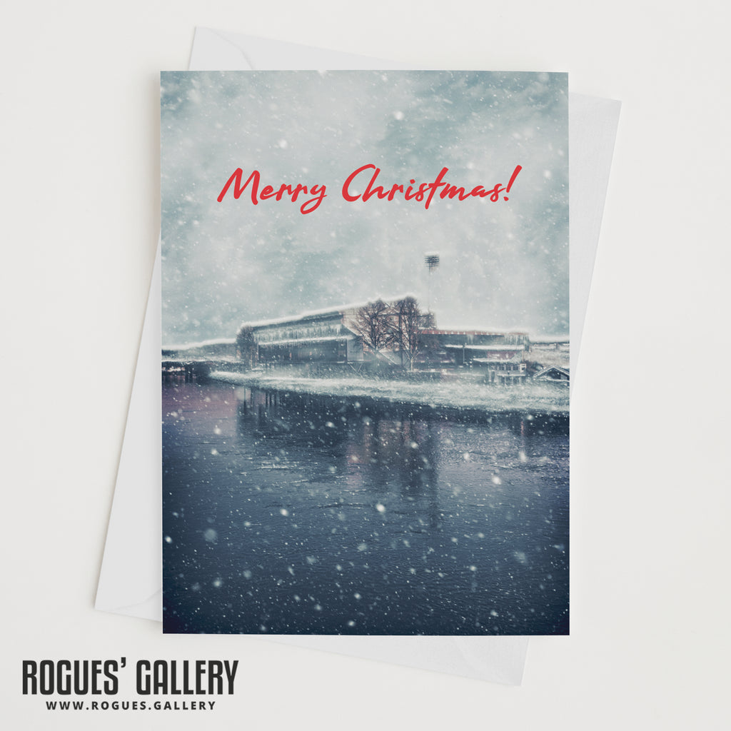 The City Ground complete with festive snow - the perfect Christmas card for any Forest fan.