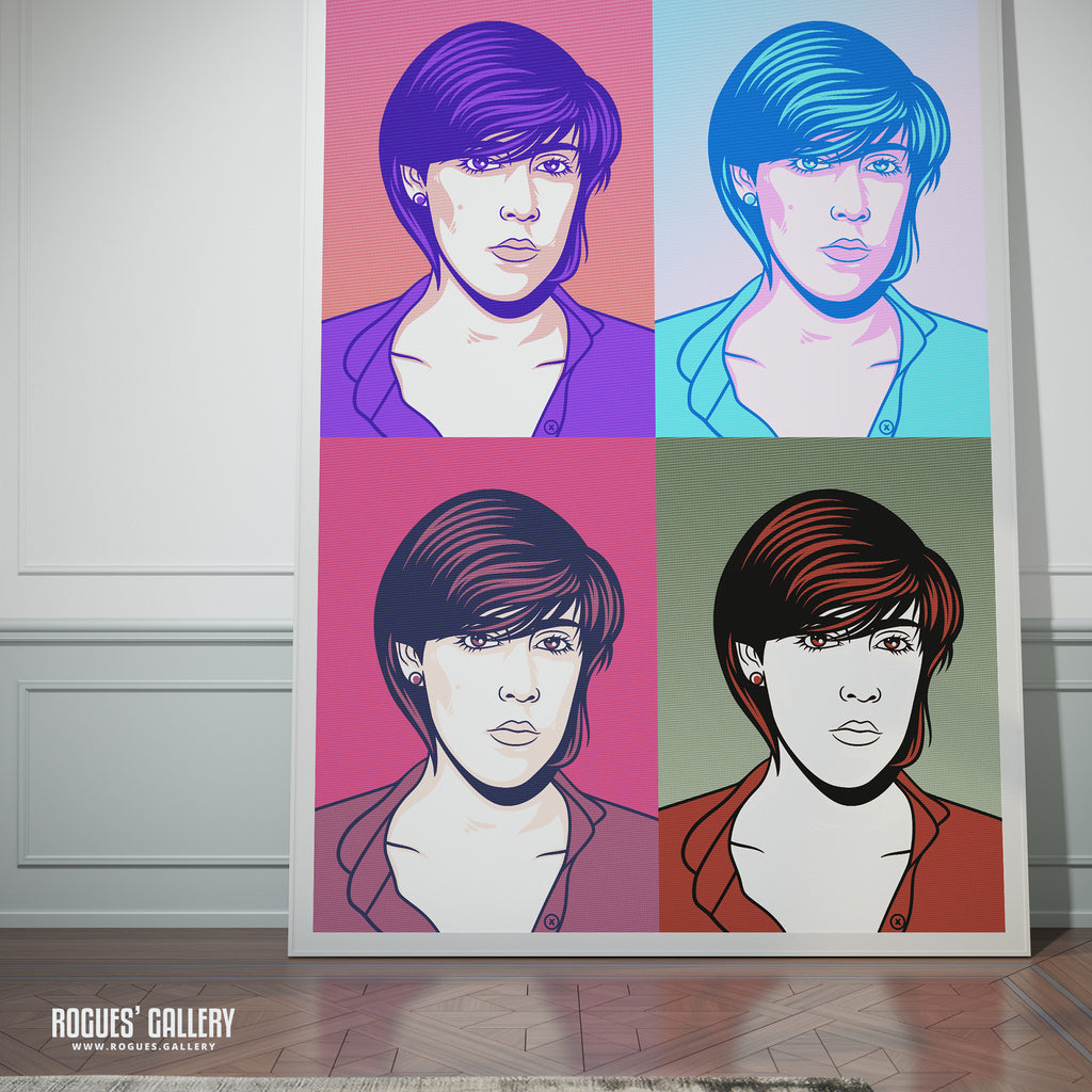 Iconic Andy Warhol style pop art designs featuring Joanne Catherall of The Human League - one of the faces of the 80s. Superb prints ideal for framing or autographing.