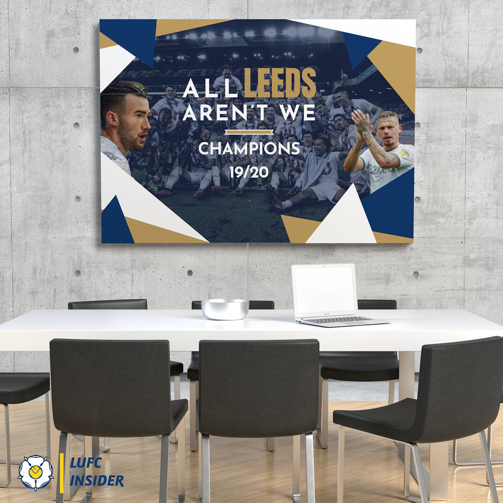 All Leeds Aren’t We (ALAW) - Part of the Leeds United Champions 19/20 Collection. The chants of “ALAW” which can be heard at all Leeds United games, is inscribed on this print, with the squad celebrating being Champions in the backround, as well as Jack Harrison and Kalvin Phillips ‘The Yorkshire Pirlo’ at either flank.