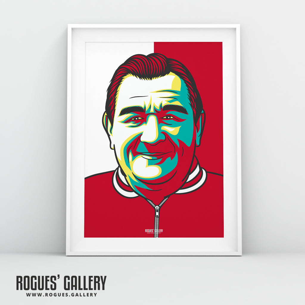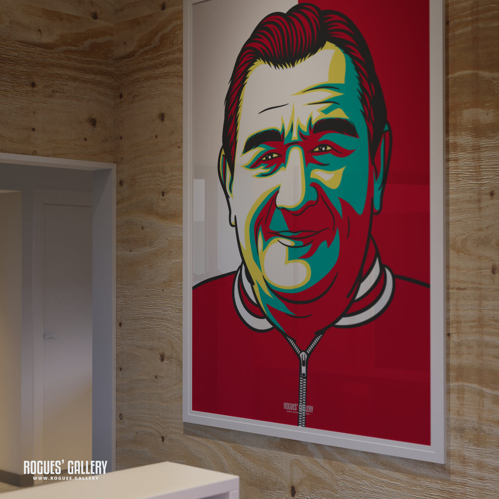 Limited Edition A3 Icon art print featuring the humble genius and Anfield legend Bob Paisley. One of the club's most loyal servants, graduating from the boot room to take the club to the very top of the world game.