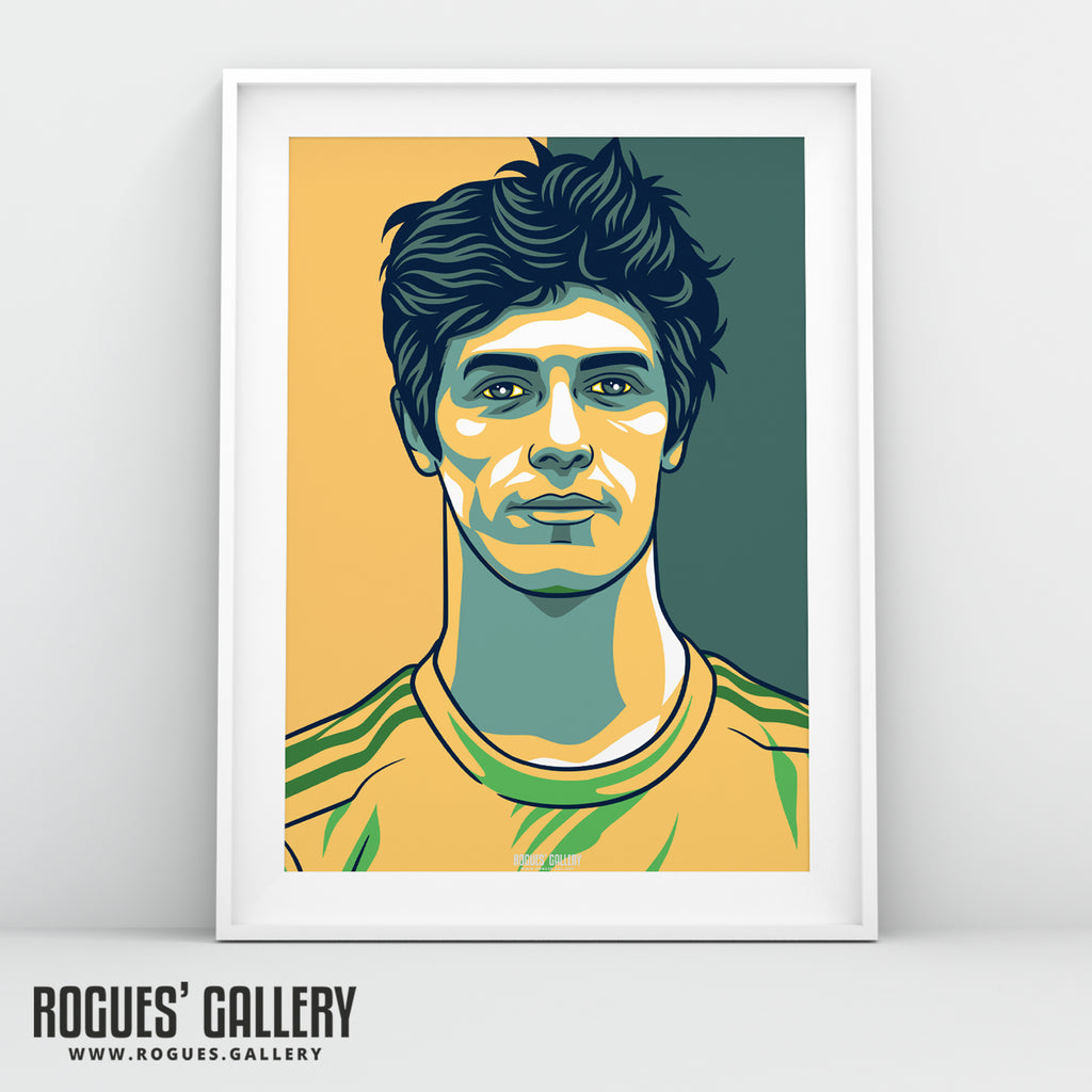 Superb quality A3 art print featuring Notts' bright young star spin bowler and handy batsman Calvin Harrison - big future ahead of this great talent. Our #GetBehindTheLads design in the classic green and gold.