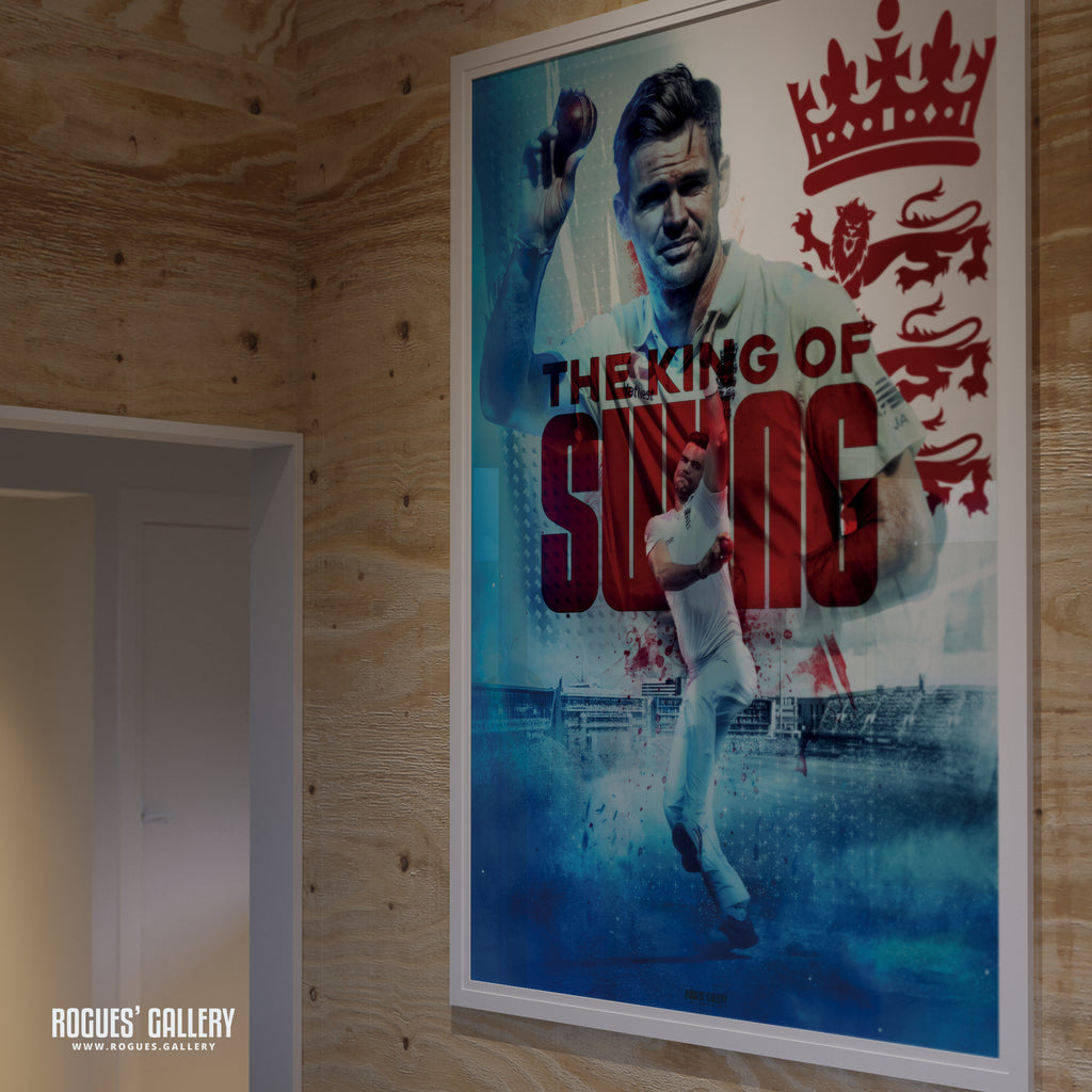 Concept poster design featuring England Cricket star swing bowler and all-time great Jimmy Anderson aka The King of Swing. The most potent seam bowler in the history of Test cricket. Available in two different styles.