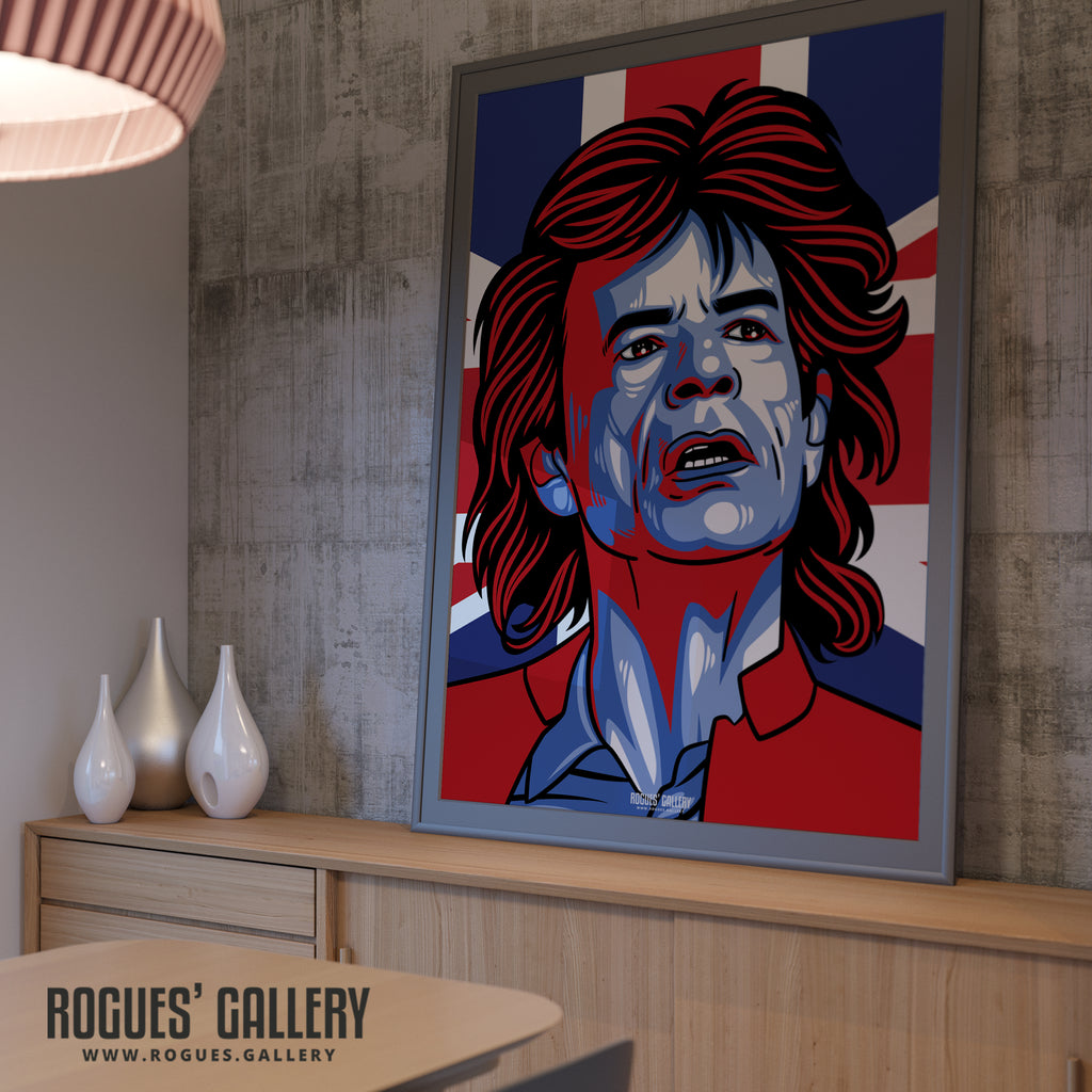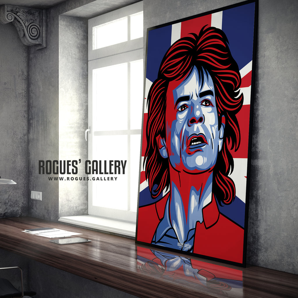 One of the most iconic faces in Rock history - Mick Jagger! Leader and enigmatic vocalist of The Rolling Stones and living legend. Check out out range of bold new designs available in a range of sizes ideal for any home. Ideal for framing.
