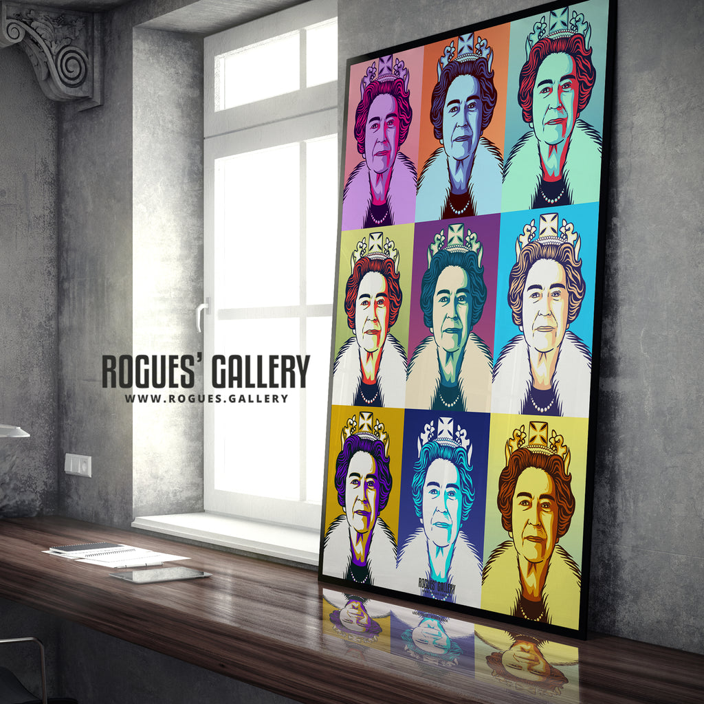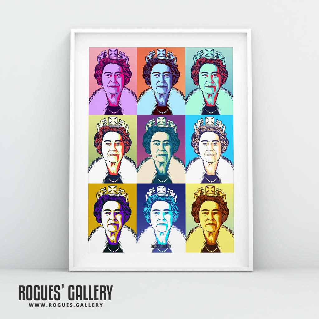 Superb quality pop art prints featuring Her Majesty The Queen, available in A3, A1 or A0 sizes.