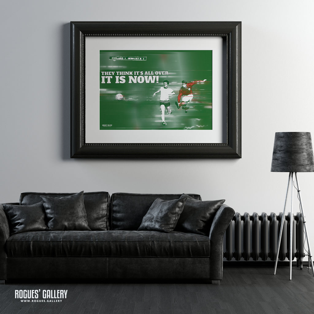 Modern revision of the classic World Cup Final Goal by Sir Geoff Hurst in the 1966 Final at Wembley with that classic quote. Other versions available.