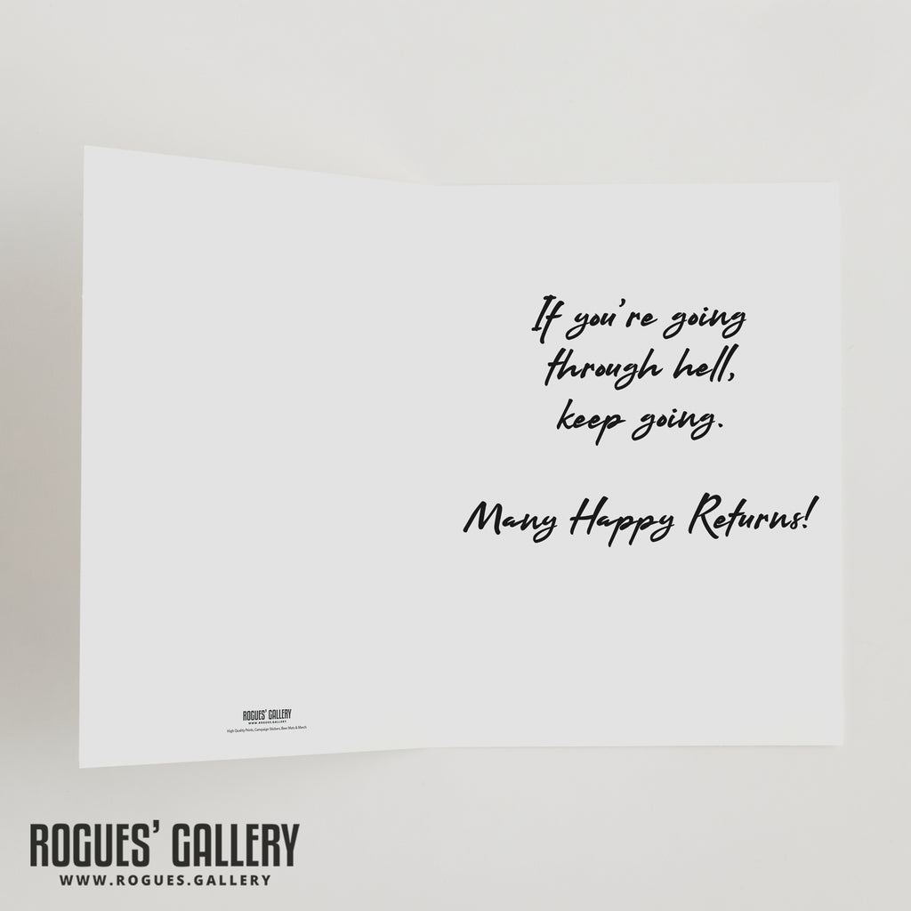 Winston Churchill Birthday card with his famous 'going through hell' quote.