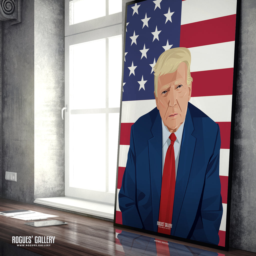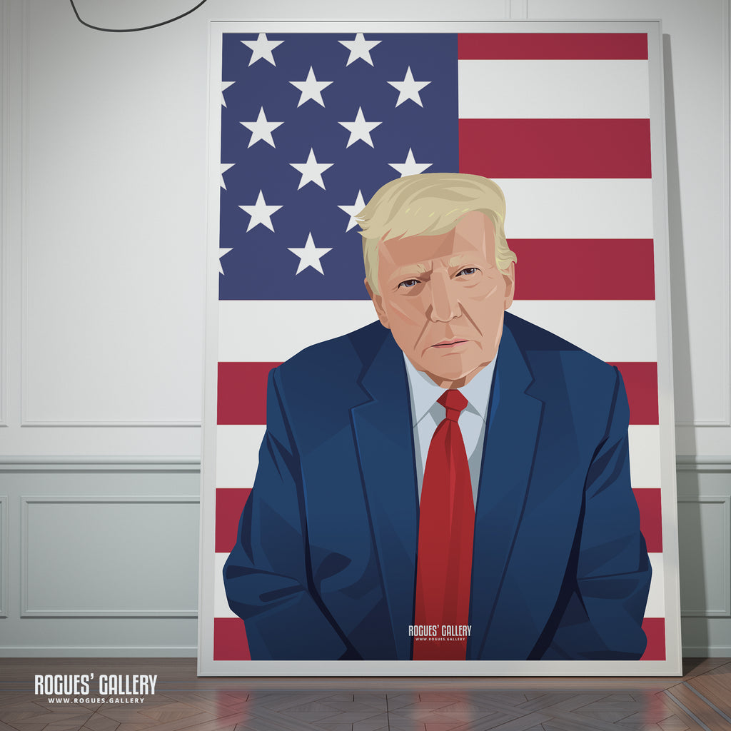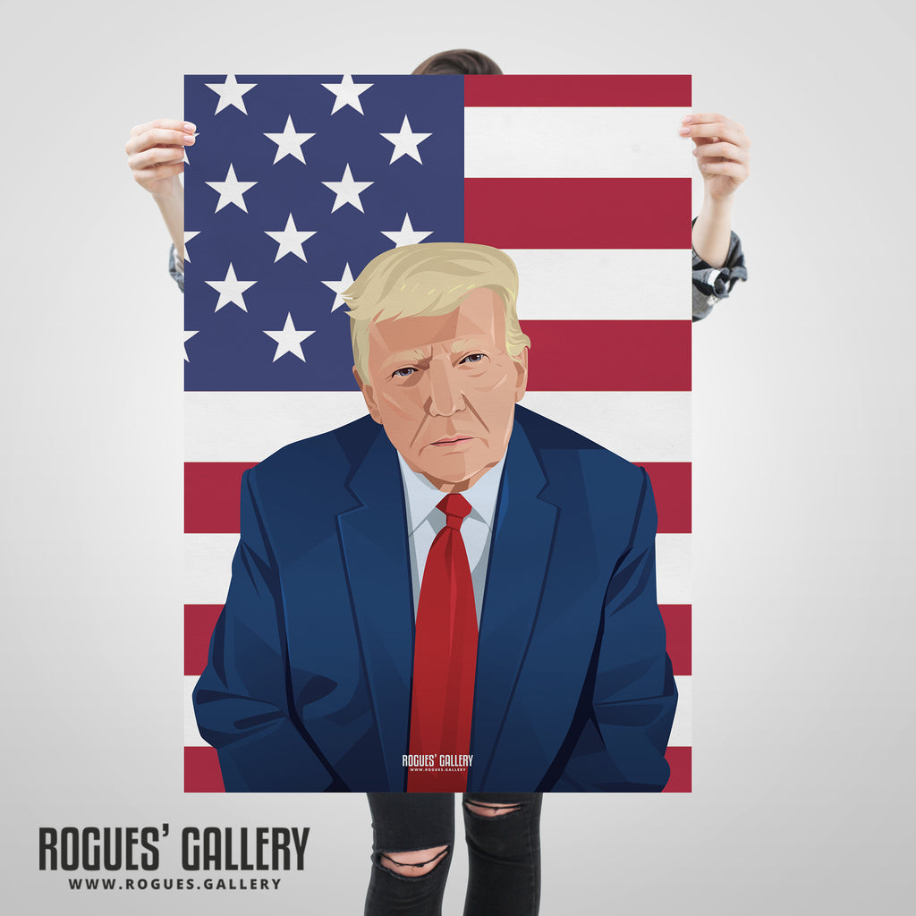 Our Politics Series of designs feature a range of significant figures from the world of politics with a range of views. We only produce them, you can vote for and agree with whoever you wish or not. They are heroes and villains to someone. This one is probably the most controversial American President of all time - Donald Trump.